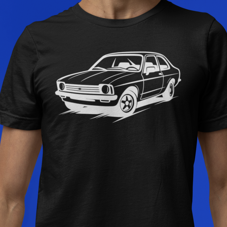 Camiseta com estampa de um Chevrolet Chevette em Lineart.