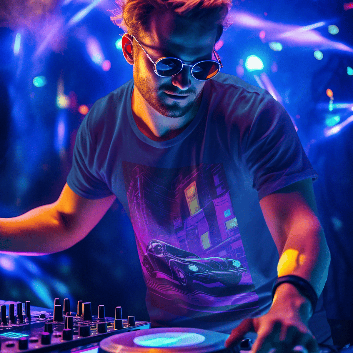 Camiseta com linda estampa de um fusca em uma noite Neon.