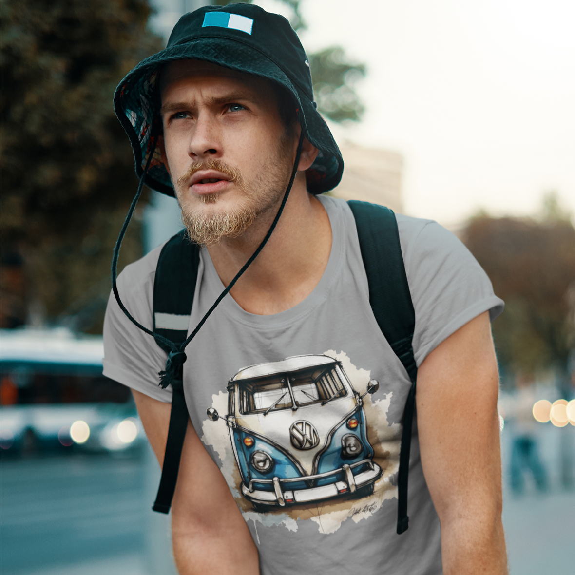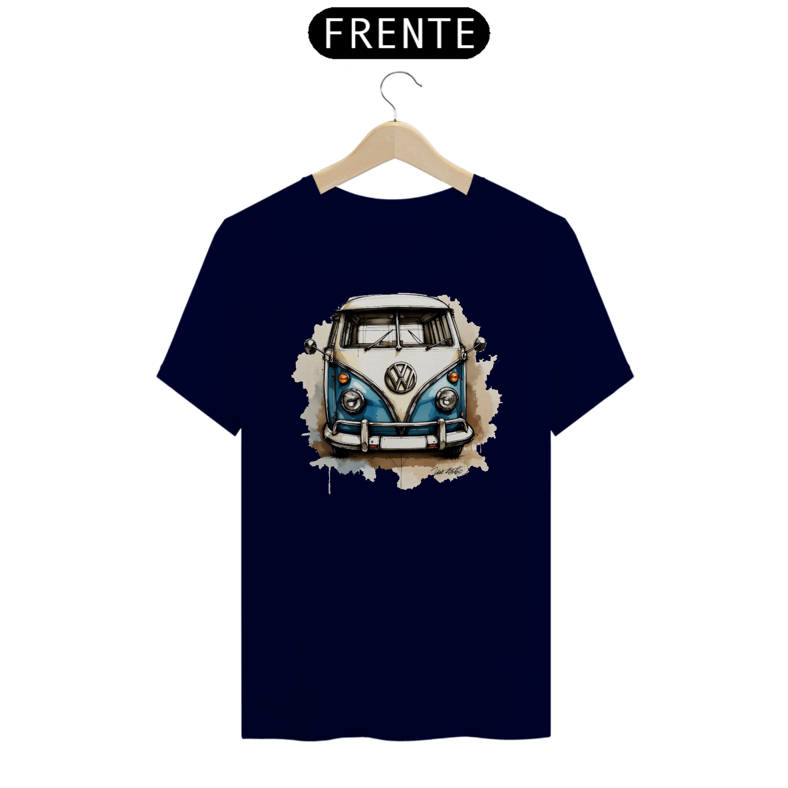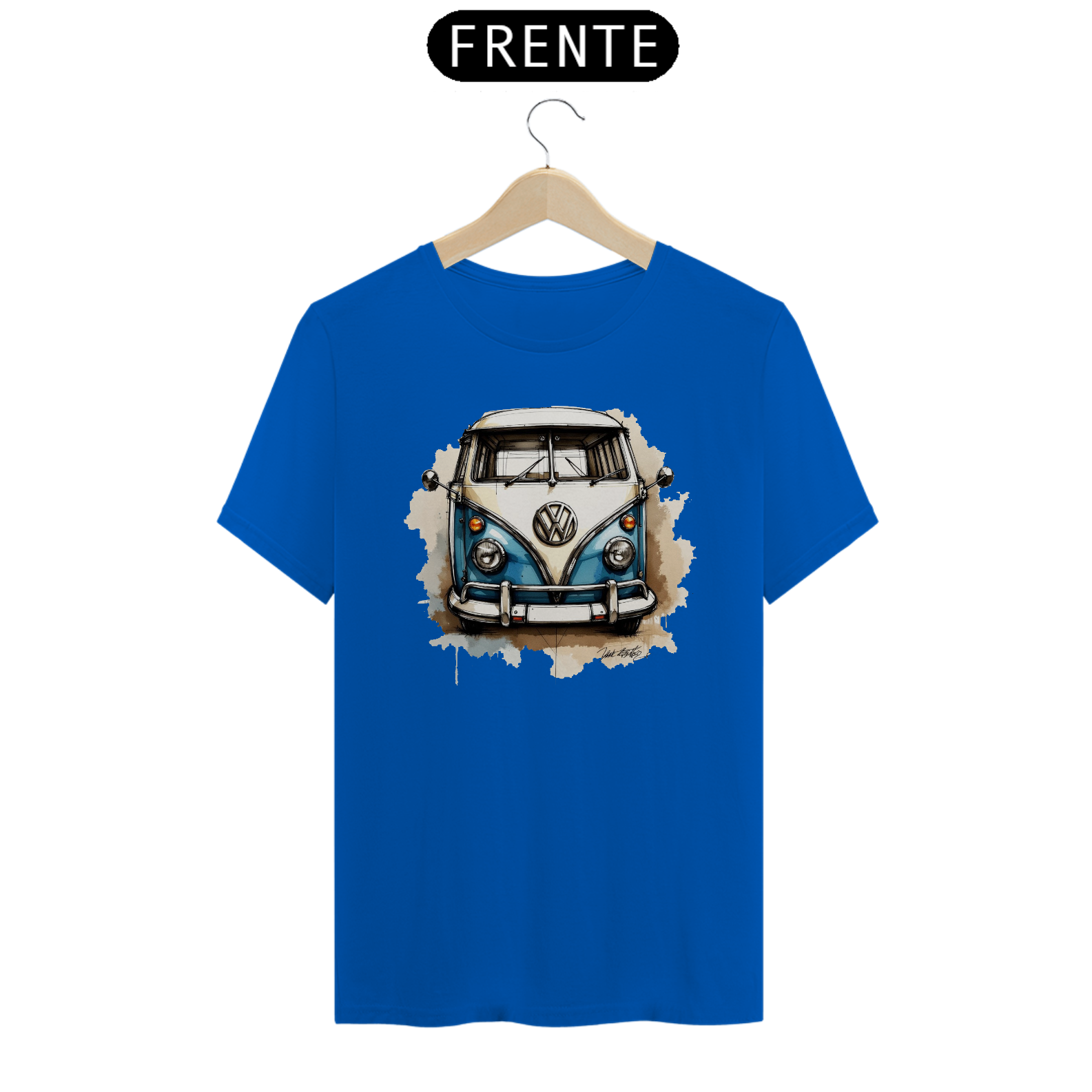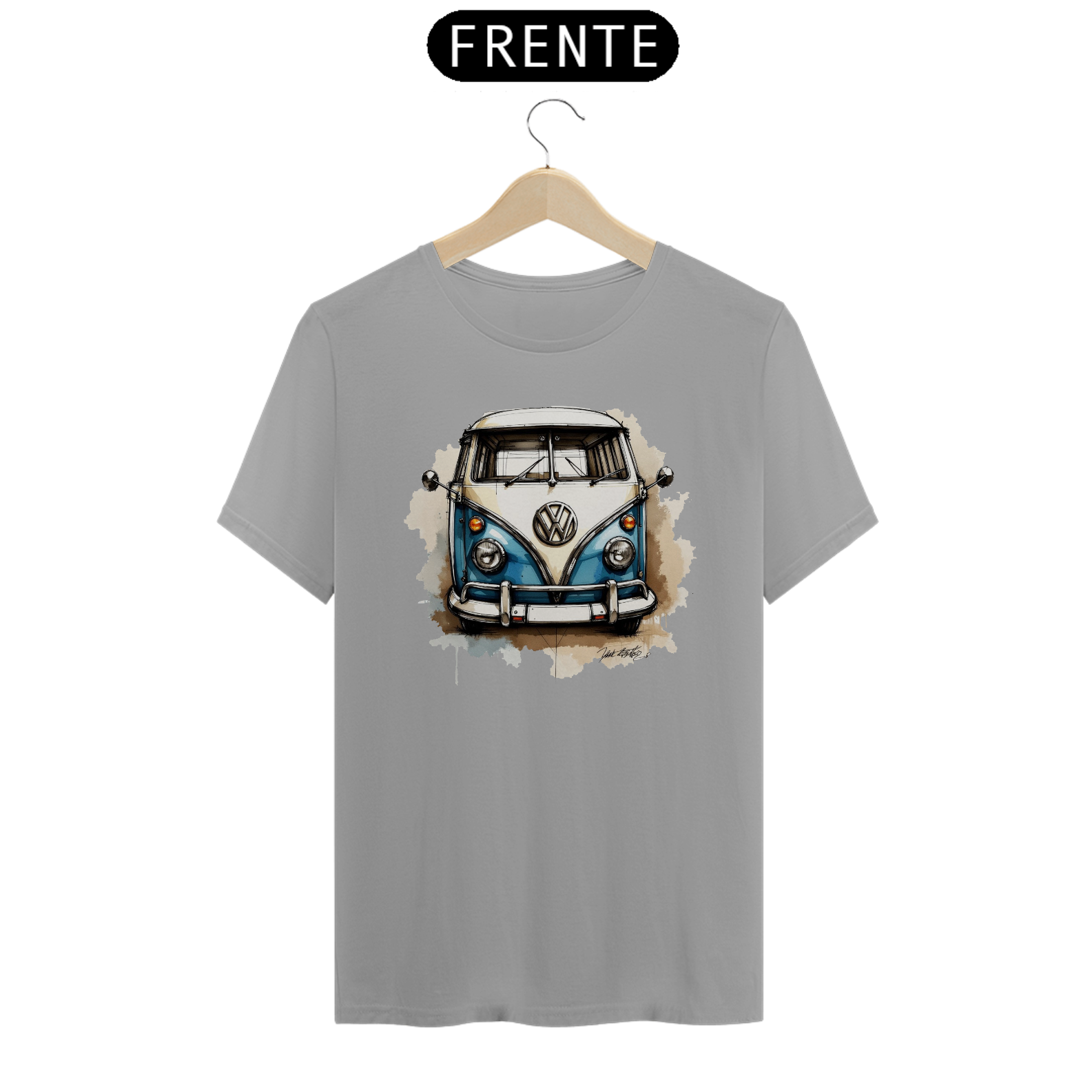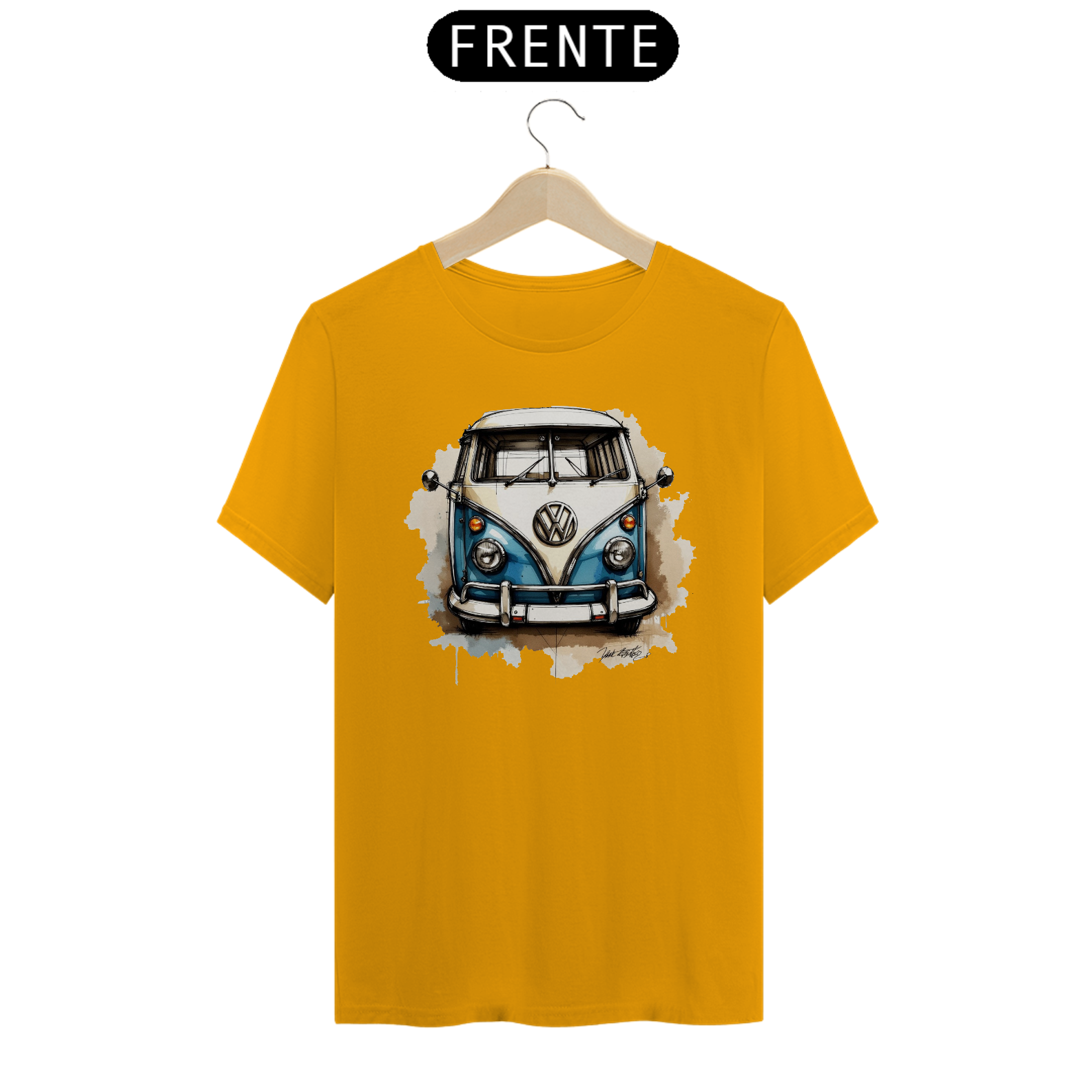 Camiseta com linda estampa de uma Kombi Corujinha desenhada.