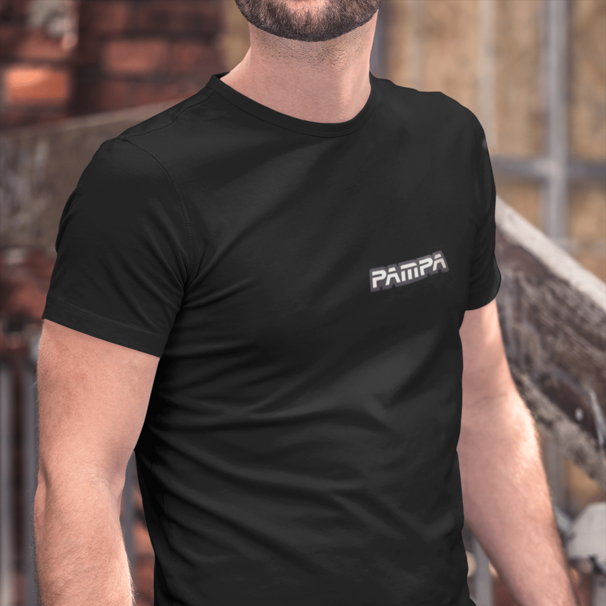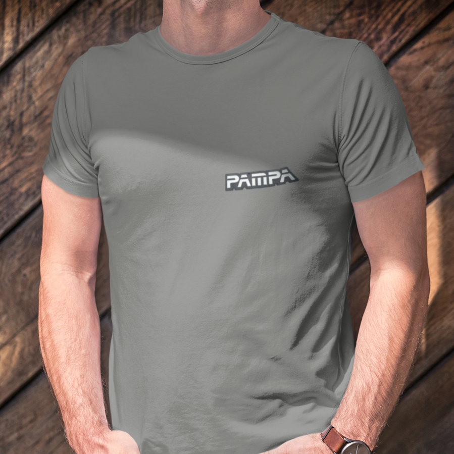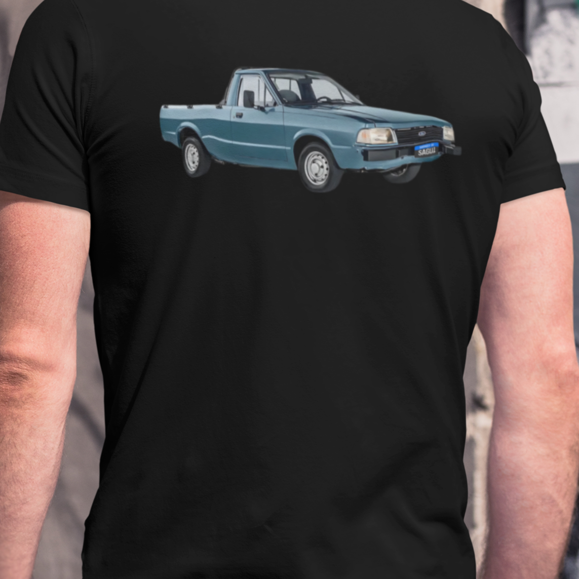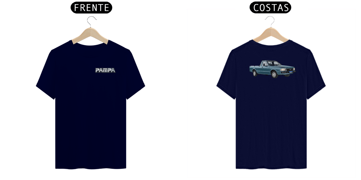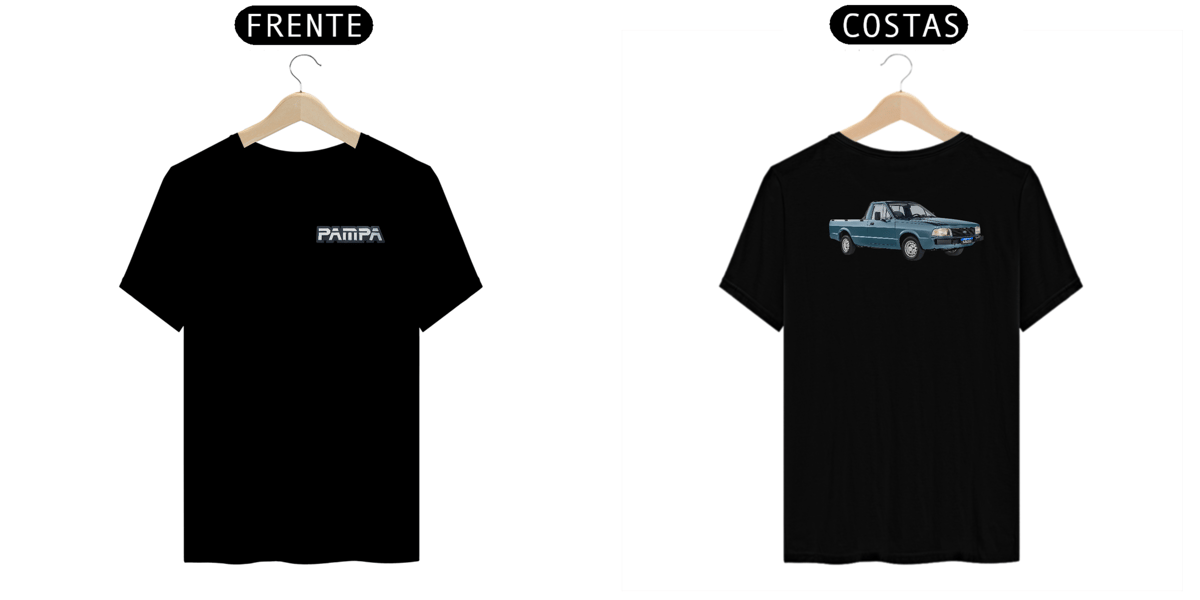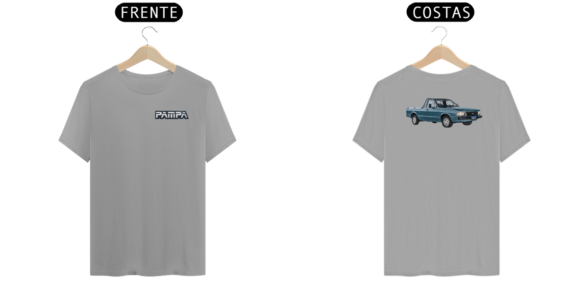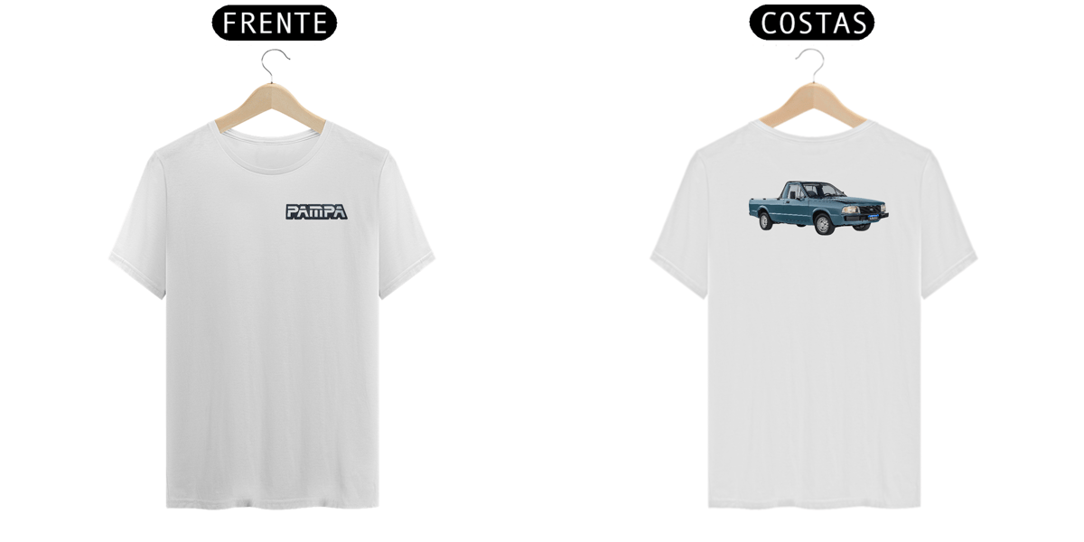 Camiseta com estampas FORD PAMPA, Emblema no Peito e Veículo nas costas.